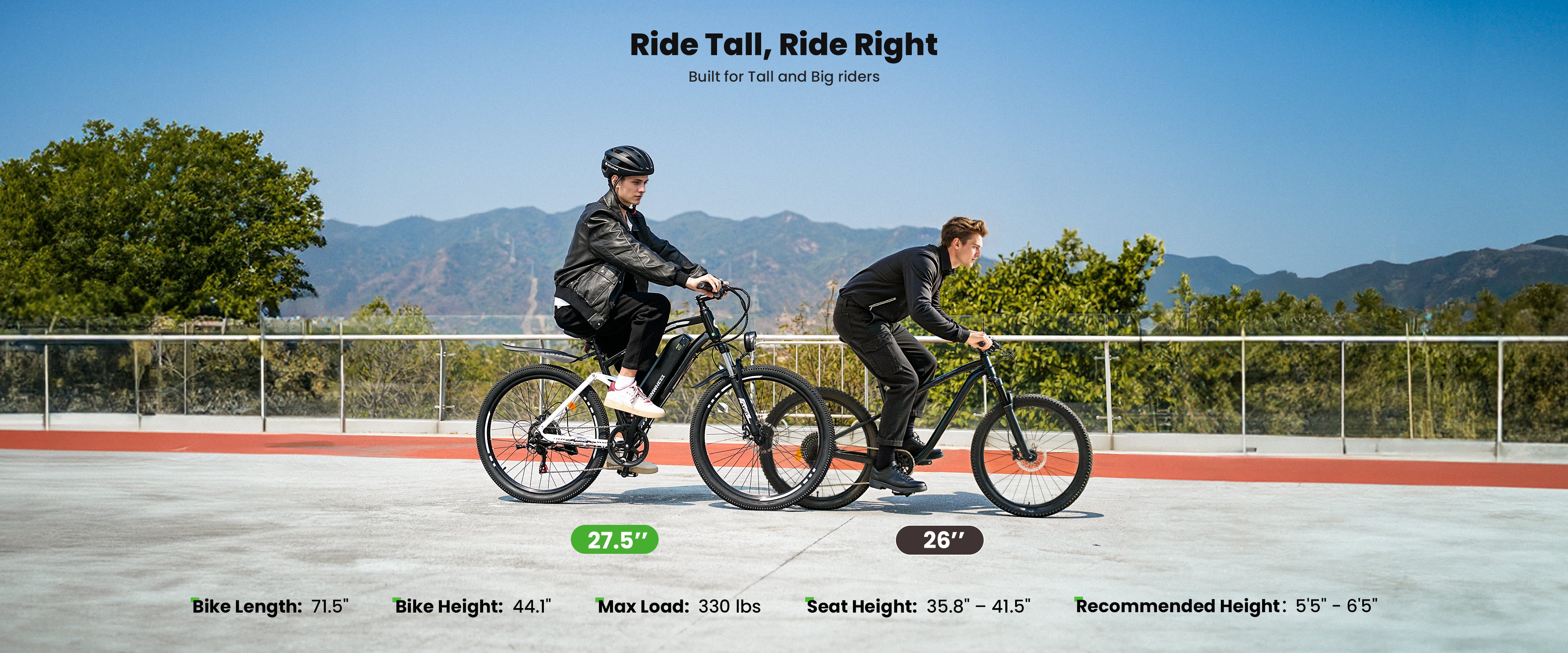 The recommended height for the riders is from 5'3'' to 6'3''( 162cm-192cm)
